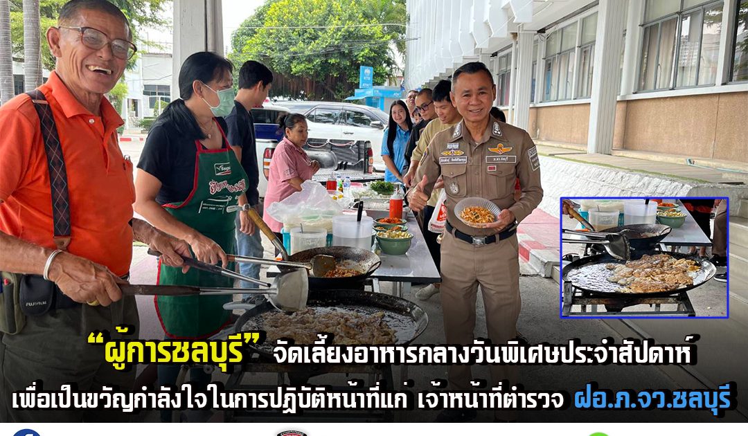 “ผู้การชลบุรี” จัดเลี้ยงอาหารกลางวันพิเศษประจำสัปดาห์ เพื่อเป็นขวัญกำลังใจในการปฏิบัติหน้าที่แก่ เจ้าหน้าที่ตำรวจ ฝอ.ภ.จว.ชลบุรี